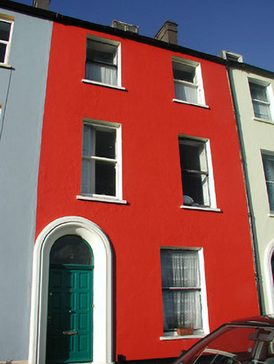 Terraced two-bay three-storey house, built 1831, with moulded surround to round-headed door opening; annexe and outbuilding to rear. Painted rendered walls. Asbestos slate pitched roof with flat roofed dormer. Timber sash windows retained, but door replaced.