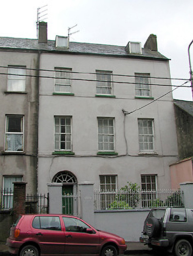 One of a pair of terraced three-bay three-storey over basement houses, c. 1830, with round-headed doorway having simple pilaster timber doorcase and fanlight; retaining timber sash windows, slate roof, panelled door and front railings. Slate pitched roof with flat roofed dormers. Walls recently re-rendered with a cement based mix. Annexe to rear.