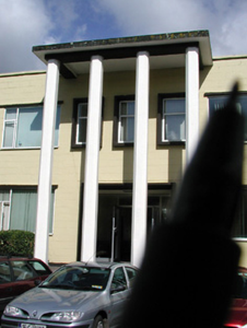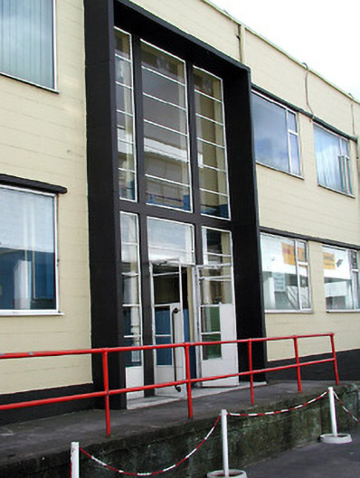 Detached two-and three-storey industrial building; partially disused. Originally part of former Henry Ford & Son Motor Works, c. 1920. Roof hidden by parapet; curved gable to east; cast-iron rainwater goods with original large box gutters. Concrete blockwork; smooth render. Timber and steel doors with entrance canopy remain to front; steel-framed glazing, now mostly painted over, some timber opening sections in glazing to rear. To interior, timber floors; concrete exposed columns; concrete staircases with terrazzo finish; terrazzo floors and desk to reception area. Now part of the Marina Commercial Park.