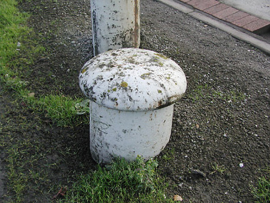 Cast iron mooring posts, some dated 1878, manufactured by Perrott of Cork.