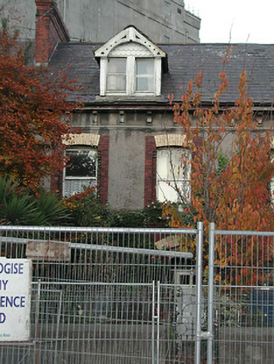 Terraced two-bay two-storey house with dormer attic, built 1894, with brick dressings to openings, retaining timber sash windows, set back from road with small garden area to front.