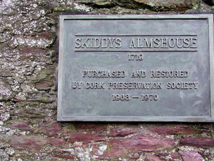 This former almshouse is a significant contributor to the architectural heritage of Cork city. The architectural form of the building is of particular interest, as few early eighteenth-century institutional buildings survive either in the city or in Ireland. The building retains many interesting features and materials, such as the dormer windows, arcade and limestone plaques. Stephen Skiddy established a trust in 1584, which was later responsible for the construction of this building. It forms part of an interesting group of charitable buildings with the former laundry to the south-east and the former North Infirmary to the south.