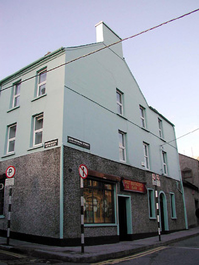Corner-sited end-of-terrace two-bay three-storey house, built c. 1870, now also in use as public house. Rendered walls to upper floors with roughcast render walls to ground floor. Pitched slate roofs with rendered and brick chimneystacks. Replacement uPVC windows, fixed windows and timber panelled doors.