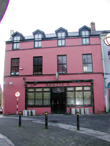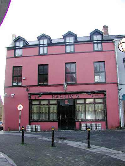 Corner-sited end-of-terrace four-bay three-storey former house, built 1887, now in use as public house. Pitched tile roof with rendered chimneystacks and gabled dormers. Rendered wall with render platbands at sill levels to upper floors. Replacement timber casement windows. Timber shopfront to ground floor comprising of carved consoles, timber pilasters, cornice and pair of timber panelled doors. Replacement fascia, fixed windows and cast-iron sill guards to shopfront.
