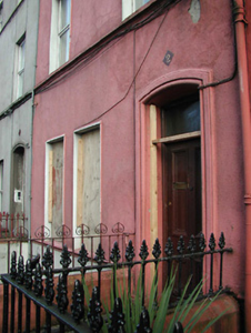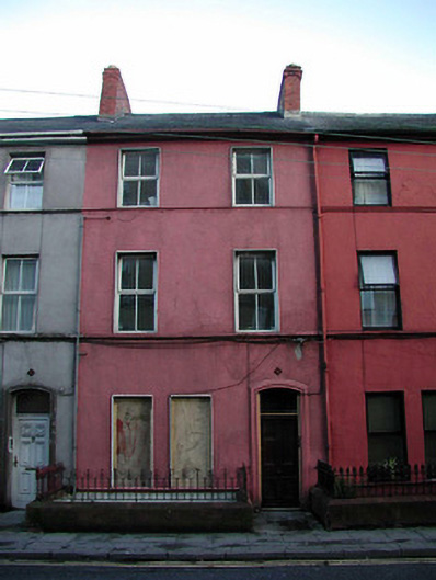 Terraced two-bay three-storey former house over basement, built c. 1880, as a terrace with the adjoining buildings to the north and south. Now in use as flats. Pitched tile roof with red brick chimneystack. Rendered walls with string courses at sill levels between floors. Segmental-arched door opening with moulded render surround and timber panelled door. Replacement uPVC windows. Rendered plinth walls with replacement cast-iron railings surrounding basement area.