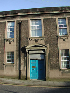 Corner-sited end-of-terrace seven-bay two-storey over basement former dental hospital , built c. 1900, now in use as clinic. Pebbledashed walls with rendered plinth, and having vertical bands around openings and eaves course. Cornice to parapet with a cast-iron downpipe. Pair of timber panelled doors set in a render door surround with a curved pediment, supported on scroll consoles. Render aprons to first floor openings. Replacement uPVC windows.