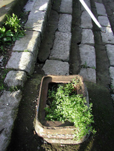 Flight of steps, built c. 1860, with limestone risers, now partly concreted. Remains of cast-iron base set in cement to upper steps.