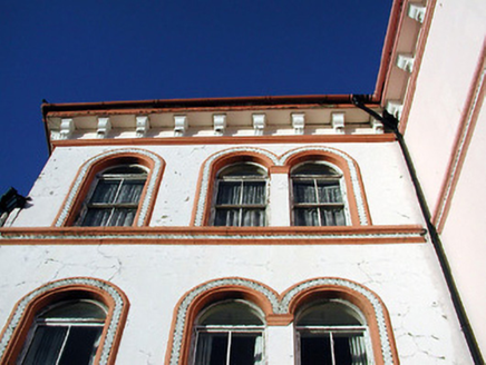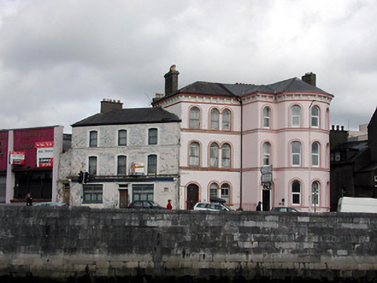 Terraced three-bay three-storey house, built c. 1860. Rendered walls, with render bracketed eaves course, and decorative string courses at sill levels to upper floors. Segmental- and round-headed window openings with decorative render surrounds and timber sash windows. Segmental-arched door opening with decorative render surrounds and limestone steps. Cast-iron railings to front elevation.