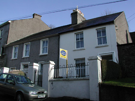 End-of-terrace two-bay two-storey house, built c. 1885, as a pair with the adjoining house to the north. Pitched slate roof with rendered chimneystack. Rendered walls with moulded render door surround. Timber sash windows. Replacement timber panelled door with toplight. Rendered boundary walls with cast-iron railings and gate to site.