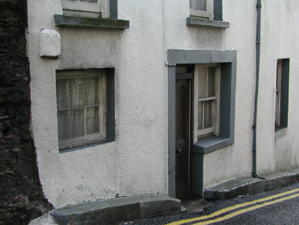 Terraced two-bay three-storey house, built c. 1840. Pitched tile roof with rendered chimneystack. Roughcast rendered walls with raised render surround to recessed window and door to ground floor. Timber sash window and timber fixed window with sills to ground floor. Timber sash windows with sills to first floor. Timber casement windows to second floor. Timber panelled door with toplight.
