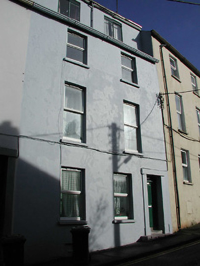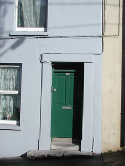 Terraced two-bay three-storey former house over raised basement, built c. 1820, as part of a terrace of six houses with the adjoining houses to the east and west. Now in use as flats. Pitched roof with rendered chimneystack and flat-roofed dormer addition. Rendered walls with raised render surround to front door. Replacement timber panelled door with toplight, approached by limestone steps. Replacement uPVC windows.