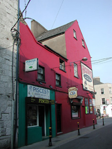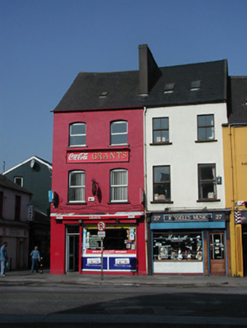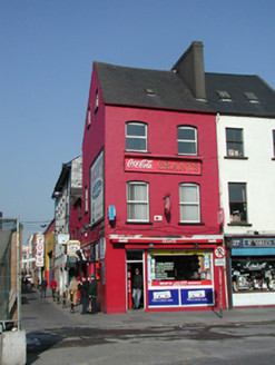 Corner-sited end-of-terrace two-bay three-storey former house, built c. 1815, as a pair with the adjoining building to the north. Pitched slate roof with rendered chimneystack and cast-iron rooflights. Rendered walls with shopfront, c. 1980, to ground floor. Segmental-arched opening to upper floors with replacement uPVC windows.