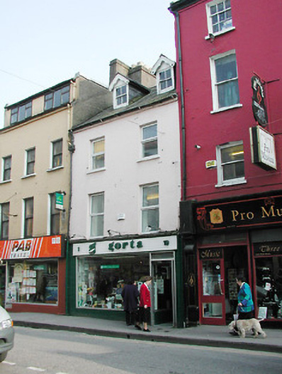 Terraced two-bay three-storey former house, built c. 1870, with gabled dormers. Pitched slate roof with rendered chimneystack and having carved timber bargeboards to dormers. Rendered walls, altered to ground floor, c. 1970, with aluminium window and glazed door. Retaining timber sash windows to dormers, and having replacement uPVC windows to first and second floors.