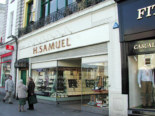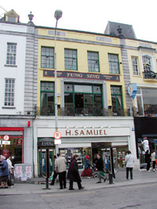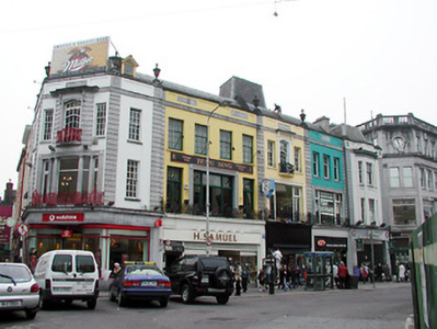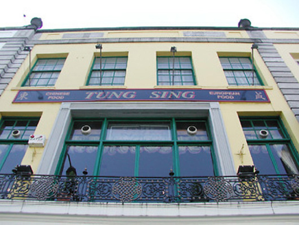 Terraced four-bay three-storey commercial building, built c. 1925, with retail outlet to ground floor and restaurant to upper floors. Pitched slate roof with rendered parapet having limestone panels, copings and urns. Rendered walls to upper floors with ashlar limestone quoins, eaves course, and surround to first floor central opening. Ashlar limestone walls to ground floor with string course between ground and first floors, and having carved fret surround to opening. Timber sash windows with moulded limestone sills to second floor, and timber casement window to first floor having wrought-iron balcony. Shopfront refitted to ground floor, c. 1990.