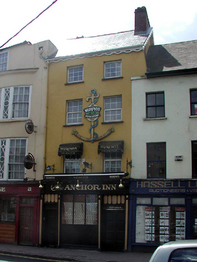 Terraced two-bay four-storey premises, c. 1790; in use as public house with residential accommodation to upper floors. Steeply pitched roof, brick chimney stack - rebuilt c. 1900. Having replacement Georgian-style uPVC windows, shopfront to ground floor with display window and two entrance doors, painted stone cills; street frontage and small enclosed area to rear.