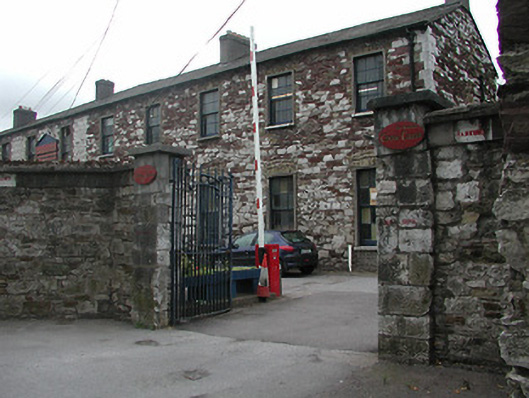 Semi-detached five-bay two-storey penitentiary building, c. 1840; now in use as school and linked to other school buildings, having slate pitched roof, rendered chimney stacks and cast iron hoppers and downpipes, random sandstone and limestone finish with squared limestone to corners, yellow brick arches over openings and rendered surrounds, retaining six over six timber sliding sash windows, some of the glazing replaced, limestone cills and square headed door opening with modern entrance door, fire exit to rear elevation with external steel stairs; part of Scoil Eoin Naofa complex with limestone rubble wall to Sawmill Street and ashlar gate piers with wrought iron gates.