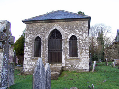 Freestanding rectangular-plan mausoleum with crypt, built c. 1760. Hipped slate roof, with carved eaves course. Coursed rubble limestone walls. Façade has pointed arch window openings flanking pointed arch doorway with flight of steps, openings having tooled limestone surrounds with raised keystones and imposts, and cast-iron grilles. Similar windows to side elevations. Flagstone floor to interior. Square-headed door opening to north-east corner of interior having timber battened door. Located in graveyard to south of Castlelyons Church, with second mausoleum to north-east.