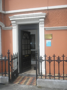 This former house stands out in a terrace of two-storey houses along the old Cork road through its bay windows and asymmetrical fenestration of varied window heads. The render details, such as the hood-mouldings and impost courses, and the decorative railings all make it an appealing component of the streetscape.