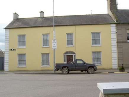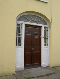 End-of-terrace four-bay two-storey house, built c. 1790. Pitched slate roof with replacement rendered chimneystacks. Painted rendered walls with render quoins. Square-headed window openings with painted stone sills and two-over-two pane timber sliding sash windows, those to ground floor having cast-iron window guards. Segmental-headed door opening with timber panelled door, spoked fanlight, timber architrave and decoratively glazed sidelights with rendered riser walls, and limestone step.