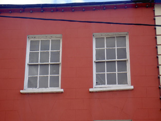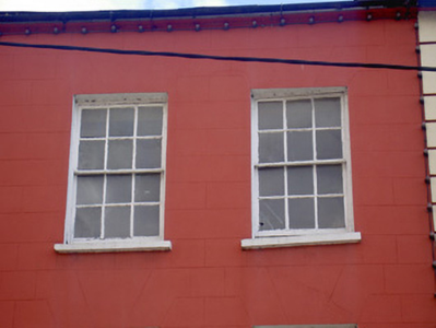 This building is similar in size and form to the surrounding buildings, whose tall elevations make a notable feature on the wide streetscape. The regular façade is enhanced by the render eaves course and quoins and by the retention of timber sash windows.