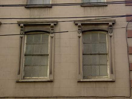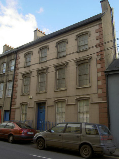 Attached four-bay three-storey house, built c. 1820, currently disused. Pitched slate roof with rendered chimneystacks, cast-iron rainwater goods and moulded ender cornice. Painted lined-and-ruled rendered walls with render quoins and having continuous render hood-moulding course to ground floor. Camber-headed window openings, with timber sliding sash windows, those to second floor being six-over-three pane with concrete sills and render hood-mouldings. First floor has six-over-six pane windows with concrete sills and moulded render surrounds comprising pilasters with square-headed panels, decorative fluted console brackets and cornices. Ground floor have six-over-six pane windows. Basement has fixed timber windows. Square-headed door opening to façade with timber panelled double-leaf door, overlight and moulded render surround, approached by dressed limestone steps. Site bounded by decorative cast-iron railings with rendered and dressed limestone plinth.