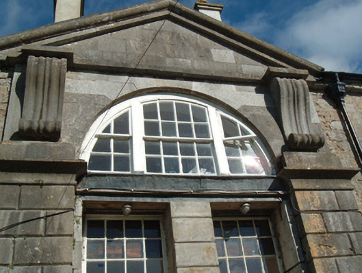 Terraced two-bay two-storey over basement house, built 1777, having entrance set in ashlar limestone pedimented breakfront, shared with adjoining building. Built as part of scheme of almshouses. Pitched slate roof with rendered chimneystacks, terracotta chimney pots and cast-iron rainwater goods. Rendered coursed rubble stone walls. Breakfront comprising ashlar limestone piers and scrolled corbels supporting open-bed pediment, with inset Diocletian timber window over pair of recessed door openings. Diocletian window comprising eight-over-eight pane timber sliding sash window flanked by two-over-four pane casement windows. Camber-headed window openings to west bay, having timber sliding sash windows, six-over-six pane to first floor and nine-over-six pane to ground floor, with limestone sills and red brick block-and-start surrounds. Replacement timber window to basement, having limestone sill and brick voussoirs. Square-headed door opening having twelve-pane overlight with timber panelled door approached by limestone steps. Rendered boundary wall with limestone coping.