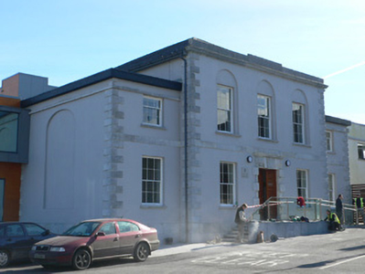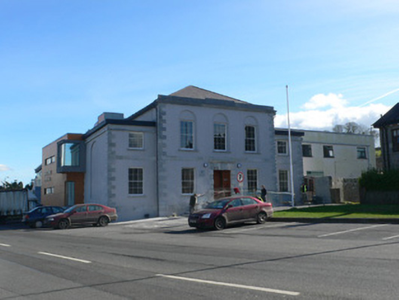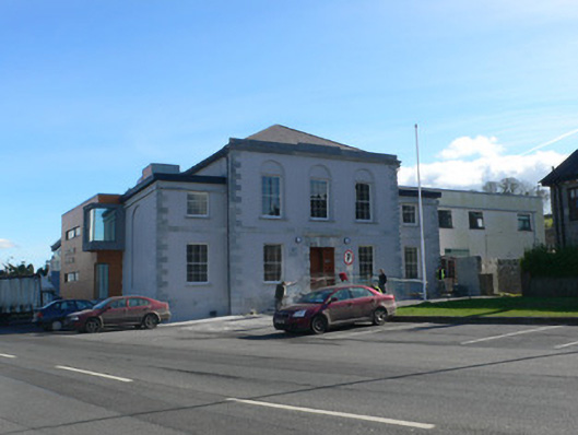 Detached two-storey court house, built c. 1805, comprising three-bay central block with lower recessed single-bay flanking blocks. Recent extensions added c. 1980 to south and rear. Hipped slate roof to main block with carved limestone cornice and dressed limestone stepped parapet. Flat roofs to flanking bays with dressed limestone cornices having dressed limestone platbands below. Rendered walls with dressed limestone platband dividing floors, and dressed limestone quoins. Round-headed blind arch to north elevation. Round-headed recessed panels to first floor of main block. Square-headed openings throughout, with cut limestone sills, having new timber sliding sash windows, three-over-six pane to first floor of flanking blocks and six-over-six pane elsewhere. Square-headed door opening, with temporary timber sheeting, having dressed limestone Gibbsian surround, carved limestone architrave, frieze and cornice, triple keystone, and roundels. Building stands at west end of street, as focus of vista from town centre and has green to front.