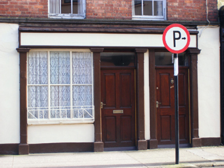 Corner-sited attached two-bay three-storey house and shop, built c. 1860. Pitched slate roof with rendered chimneystacks. Scottish bond brick walls with decorative eaves course to upper floors, painted rendered walls to ground floor. Square-headed openings having six-over-six pane timber sliding sash windows and render sills. Shopfront comprising pilasters with moulded capitals flanking openings, having fascia above. Square-headed openings to ground floor, with fixed three-over-three pane display window having wrought-iron sill guard and pair of timber panelled doors with overlights.