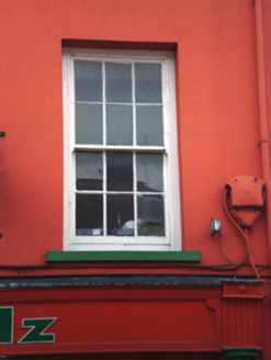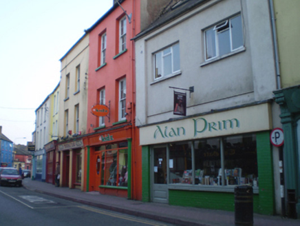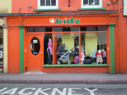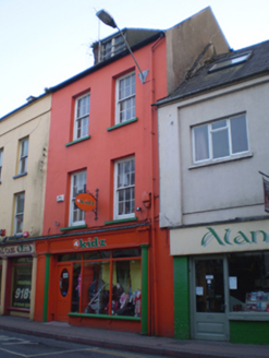 Attached two-bay three-storey with dormer attic former house, built c. 1780, forming a pair with building to south-east, now in use as shop and having recent timber shopfront to ground floor. Pitched slate roof with dormer window. Rendered walls with square-headed openings having six-over-six pane timber sliding sash windows and concrete sills. Timber shopfront to ground floor comprising fluted engaged columns flanking openings with fluted brackets and timber fascia above. Square-headed opening with plate glass windows having timber surrounds, concrete sill and rendered stall riser. Square-headed opening with timber glazed door. Fronts directly onto street.