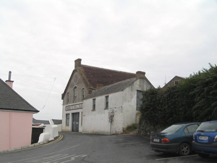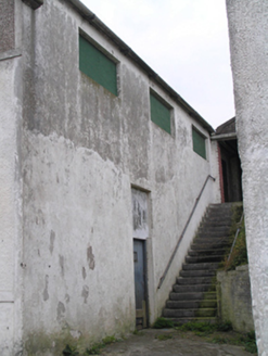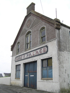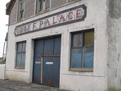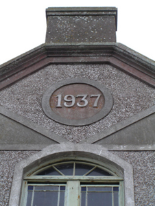 Detached gable-fronted three-bay two-storey former dance hall, dated 1937, having three-bay side elevations, and with two two-storey extensions with pitched corrugated-iron roofs, to rear (south) and to south-west. Now disused. Pitched tile roof with rendered chimneystacks and terracotta ridge crestings, render eaves course and consoles to front (north) gable. Rendered walls with decorative strapwork, drydashing, date plaque and nameplate to front gable. Segmental-headed openings to first floor front gable with one-over-one pane timber sliding sash windows with margin sashes, bipartite to centre, with spoked fanlights and render sill course. Square-headed openings to ground floor with replacement timber windows and timber battened door. Square-headed openings, with timber casement windows to east elevation, boarded window openings and with timber battened door to west. External staircase leads to extension to south-west.
