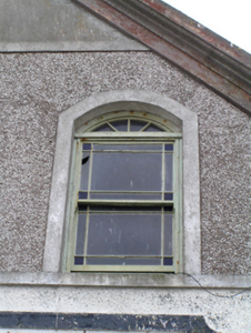 Decorative ridge crestings and consoles make distinctive roofline. Highly decorative applied render enlivens gable. Retains notable coloured glass timber sash windows forming coherent scheme of fenestration.