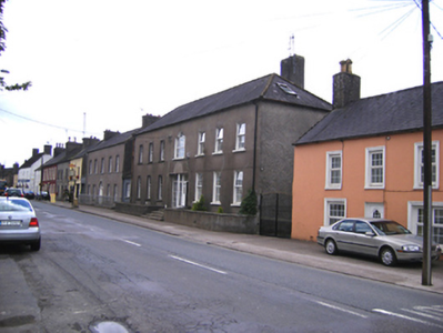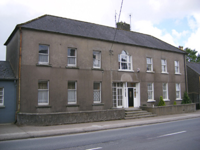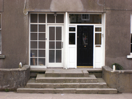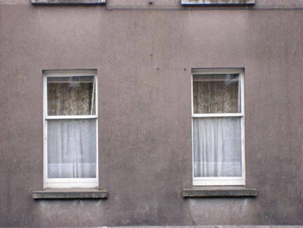 Attached seven-bay two-storey former barracks, built c. 1750, altered and now in use as pair of semi-detached houses. Hipped slate roof with rendered chimneystack and cast-iron rainwater goods. Rendered walls. Square-headed window openings to front (north) elevation with one-over-one pane timber sliding sash and replacement uPVC windows. Venetian window opening to central bay of first floor with concrete sill and replacement uPVC window. Square-headed opening to front forming pair of entrances. East entrance having timber glazed door, sidelight and overlight. West entrance having timber panelled door and sidelights and overlight. Site bounded by rendered walls with limestone copings. Cut limestone steps to entrances.