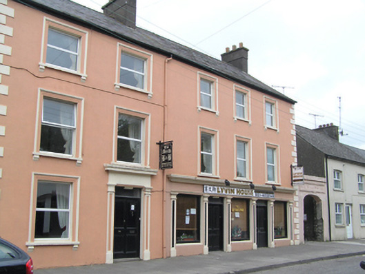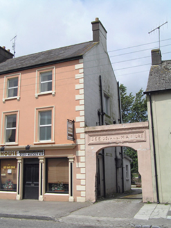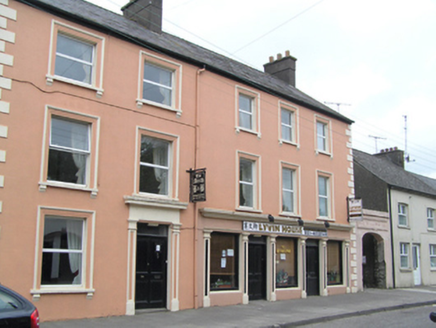 End-of-terrace three-bay three-storey house, built c. 1840, with shopfront to ground floor, now in use as guesthouse and restaurant. Pitched slate roof with rendered chimneystacks. Lined-and-ruled render walls with render quoins, exposed rubble limestone walls to rear (north) elevation. Square-headed window openings to front elevation with moulded render surrounds and concrete sills, those to second floor supported by render corbels. Camber-arched openings to rear elevation with red brick block-and start surrounds and voussiours. Replacement uPVC windows throughout. Render shopfront comprising render pilasters flanking openings and render architrave, fascia and cornice above. Square-headed openings with plate glass windows and square-headed openings with timber panelled doors and overlights to ground floor.