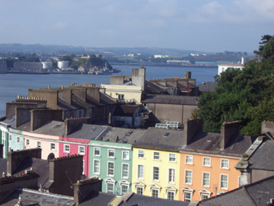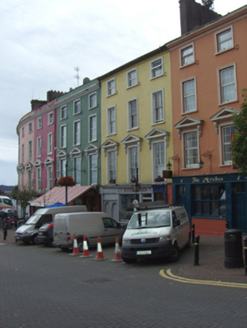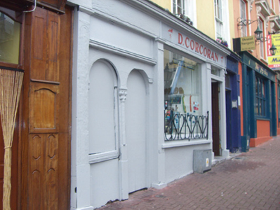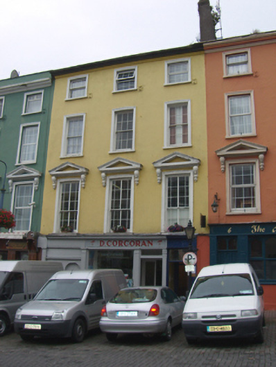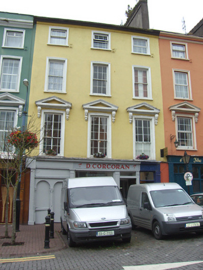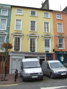 Terraced three-bay four-storey former house, built c. 1855, with shopfront to front (east) elevation. Now in use a shop. Pitched slate roof with rendered chimneystack. Rendered walls. Square-headed openings, those to third floor having replacement uPVC windows and render surrounds. Square-headed openings to second floor having six-over-six pane timber sliding sash windows and render surrounds. Square-headed openings to first floor with six-over-four pane timber sliding margin sash windows having render pediments with consoles. Timber shopfront comprising pilasters supporting cornice and fascia. Square-headed display opening with wrought-iron sill guard. Square-headed opening with overlight and timber panelled door. Round-headed window opening, now blocked up to south-end bay having flanking Corinthian-style timber engaged colonettes and round-headed door opening, now blocked up.
