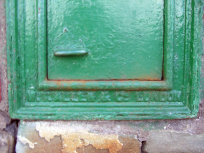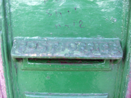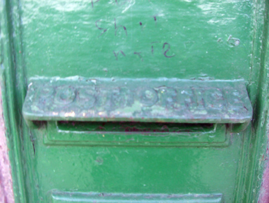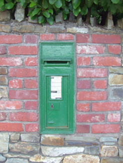 Simple and well-designed cast-iron post box with raised lettering and crown which enhance its modest form and adds artistic interest.