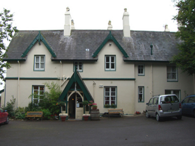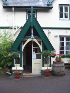 Detached three-bay two-storey former rectory, designed 1866, having porch and gablets to front (east) elevation, three-bay three-storey extension to north, projecting gabled end bay with bay window, gablets and three-bay single-storey extension to south. Pitched slate roofs with timber bargeboards, finials and rendered chimneystacks. Pitched slate roof having heavy timber bargeboards to porch. Rendered walls having moulded render string course and plaque to gabled end bay south elevation. Timber scissors brace to porch, front elevation. Square-headed openings to first floor, front elevation having bipartite one-over-one pane timber sliding sash windows. Square-headed bipartite openings to ground floor and first floor central bay, front elevation, having two-over-two pane timber sliding sash windows. Square-headed openings to bay window having two-over-four pane timber sliding sash window flanked by one-over-two pane timber sliding sash windows. Trefoil-headed window openings to porch, north and south elevations. Square-headed openings to porch having half-glazed timber panelled double-leaf doors with flanking trefoil-headed sidelights. Timber scissors truss ceiling and tiled floor to porch interior.