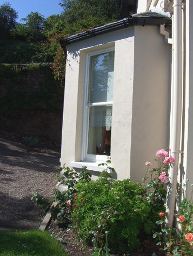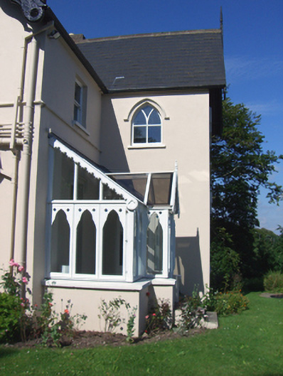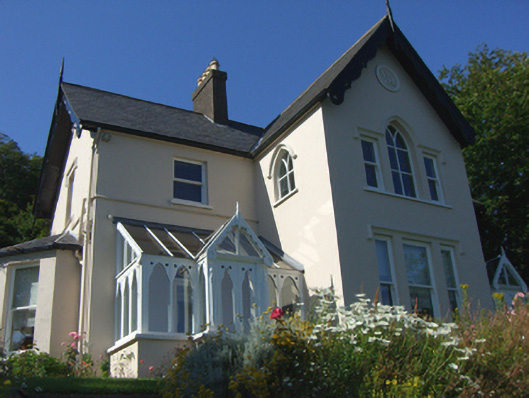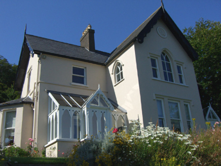 Detached three-bay two-storey former manse, built c. 1850, having gabled centre-bay and recent porches to front (south) elevation end bays. Single-storey bay window to west elevation, three-bay two-storey return and porch to rear. Now in use as house. Pitched slate roofs having rendered chimneystacks, ornate timber bargeboards with trefoil motifs and finials. Rendered walls with plaque to gable front elevation. Square-headed openings having one-over-one pane timber sliding sash windows. Painted sills throughout. Square-headed opening to west elevation with render label moulding and continuous sill course. Square-headed tripartite opening to gabled centre-bay having render label moulding, one-over-one pane timber sliding sash windows and painted sills. Pointed arch opening to gabled centre-bay with render hood moulding, Y-tracery fixed window and flanking square-headed windows having one-over-one pane timber sliding sash windows. Pointed arch opening to gabled centre-bay west elevation with Y-tracery window and render hood moulding. Square-headed opening to front elevation, western bay having half-glazed timber panelled door. Square-headed opening to rear porch with render label moulding and timber panelled door. Metal staircase to return leading to square-headed opening with half-glazed timber panelled door. Rendered steps to porches.