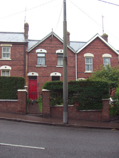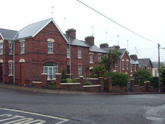 Terraced two-bay two-storey house, built c. 1880, having single-storey extension to rear. Pitched slate roof with brick chimneystacks and timber bargeboards with finial. Brick walls with vitrified brick string courses to gable. Square-headed openings having vitrified brick impost course, render architraves and replacement uPVC windows. Square-headed opening with vitrified brick impost course, rounded render architrave and tiled detail over overlight and timber panelled door. Pair of square-profile brick piers with single-leaf cast-iron gate.