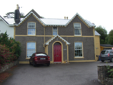 Semi-detached three-bay two-storey house, built c. 1840, having gabled end bays and porch to front (south) elevation. Single-bay two-storey extension with porch to east elevation. Pitched artificial slate roof with timber bargeboards and render chimneystacks. Roughcast rendered walls with render plinth and eaves course. Camber-headed openings to first floor having replacement uPVC windows. Continuous sill course to first floor windows. Round-headed opening to porch having overlight and timber panelled door. Rendered boundary walls to east with cast-iron plaque.