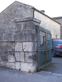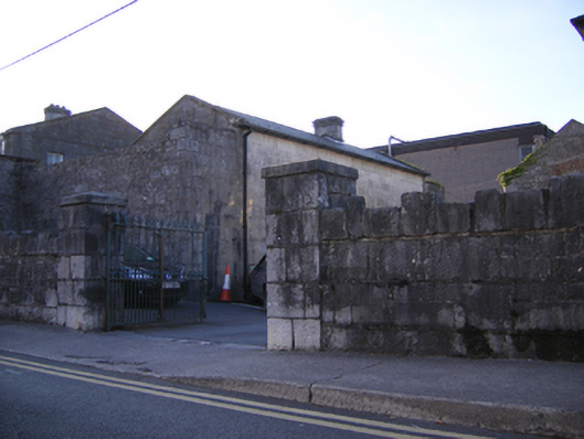 Detached five-bay single-storey former bridewell, built c. 1830, having single-bay single-storey extension to north. Pitched slate roof with limestone chimneystack. Ashlar limestone walls. Square-headed openings over four-over-four pane timber sliding sash windows with limestone sills. Square-headed openings having timber louvered doors. Square-profile ashlar limestone piers to south with carved caps and single-leaf cast-iron gate. Dressed limestone boundary walls having limestone cappings.