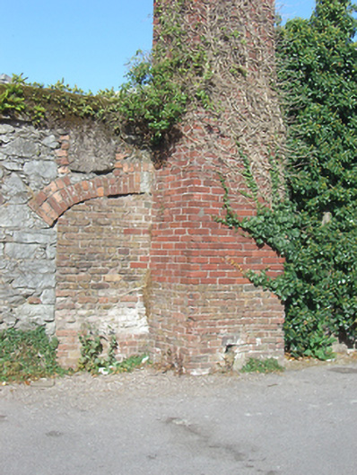 Square-profile stepped red brick chimney stack, c.1870. Rubble limestone walls abutting north and south elevations.