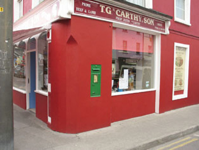 A finely crafted in use post box located at a prominent crossroads in Bantry. The form of this modest functional object is enlivened by an embossed royal insignia which identifies the date of production to the reign of Queen Victoria (1837-1901).