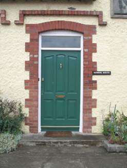 Located at the top of the main street this house is a prominent feature in the streetscape. It is a charming early twentieth century addition to the village. Its Arts and Crafts style is a particularly unusual style in Cork county. The distinctive use of red brick in the façade and in particular the chimney enlivens the structure, while the render sundial is a delightful feature.