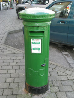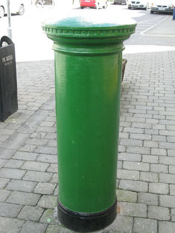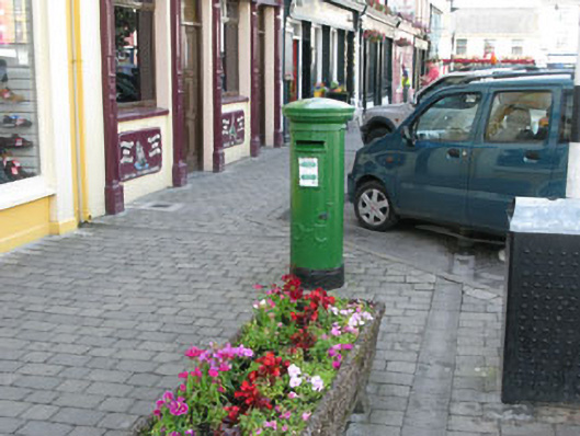 This cast-iron post box, which is still in use, is an attractive item of street furniture and represents a notable example of the high quality of mass-produced cast-iron work. The raised Gaelic script lettering was used by government for many official purposes in the early decades of the state.