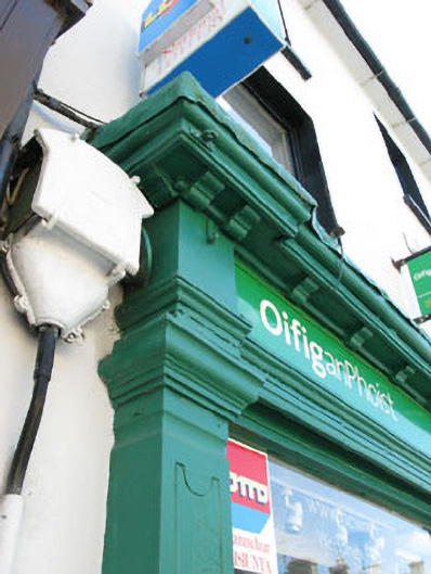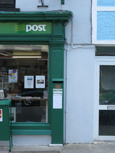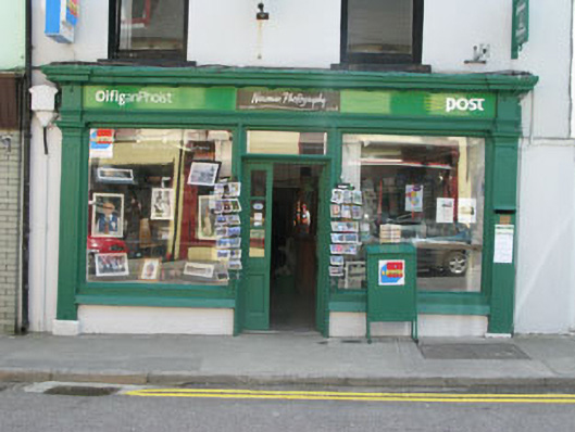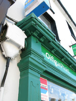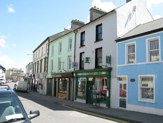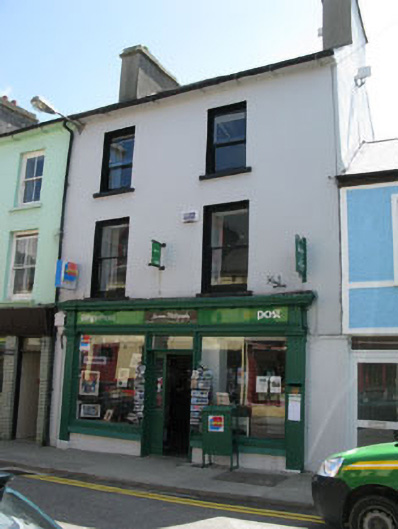 Terraced two-bay three-storey house, built c.1880, now in use as shop and post office. Pitched artificial slate roof with rendered chimneystacks and uPVC rainwater goods. Painted rendered walls. Square-headed openings with one-over-one timber sliding sash windows and concrete sills. Shopfront comprising timber panelled pilasters with post-box aperture and consoles supporting architrave, fascia and dentillated cornice. Square-headed openings with timber fixed pane display windows and concrete sills. Square-headed door opening with double-leaf timber glazed doors and overlight.