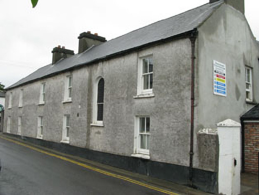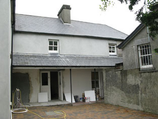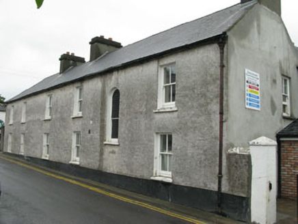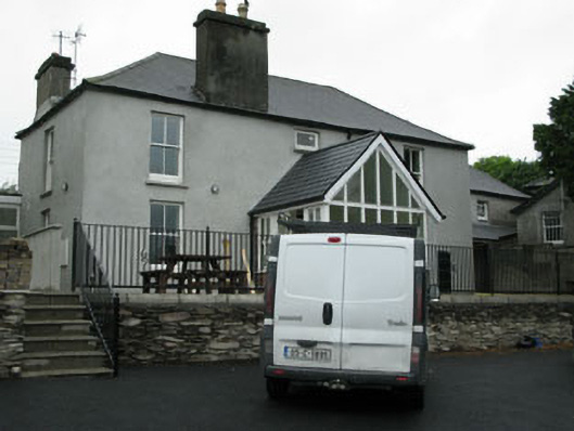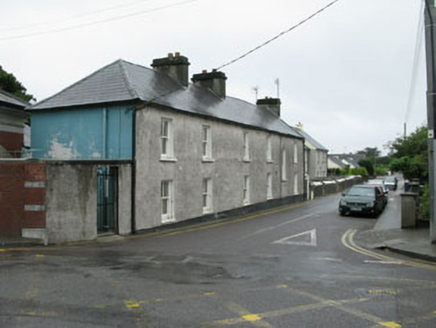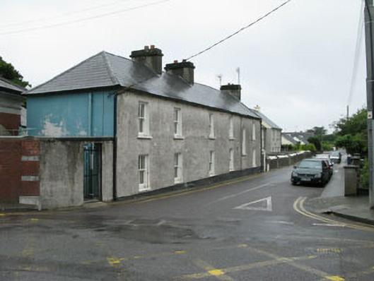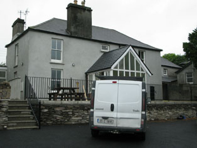 Detached six-bay two-storey house, built c.1860. Later extension and verandah to rear (east). Pitched and hipped artificial slate roofs having rendered chimneystacks with cast-iron and uPVC rainwater goods. Roughcast and painted smooth rendered walls. Square-headed openings with two-over-two timber sliding sash windows and concrete sills. Round-headed opening (west) with one-over-one timber sliding sash window and stained glass. Square-headed door openings with single and double-leaf timber replacement doors.