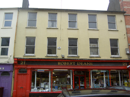 Terraced five-bay three-storey former house, built c.1820, now in use as retail outlet. Pitched slate roof with rendered chimneystacks and cast-iron rainwater goods. Rendered walls. Square-headed openings with one-over-one pane timber sliding sash windows. Carved timber shopfront to ground floor, comprising end pilasters flanking bipartite display windows with colonettes, having central recessed glazed entrance, with name fascia, consoles and moulded cornice. Timber matchboard door with overlight leading to upper floors.