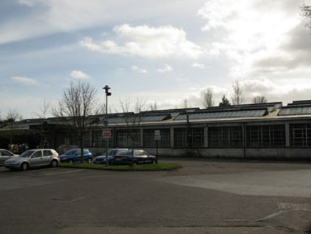 Detached eighteen-bay single-storey factory, built c.1940. Pitched saw tooth aluminium roof with single-pitch monitors and aluminium rainwater goods. Roughcast rendered walls with plinth. Square-headed window openings having concrete sills and aluminium casement windows. Square-headed door openings having concrete block surrounds with single and double-leaf glazed timber doors. Concrete wall to front of site having square-profile piers with stone cladding.