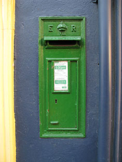 This cast-iron post-box, which remains in use, is a subtle but important feature of the streetscape. The modest design is enhanced by the royal cipher with crown motif, which enlivens the appearance of this otherwise functional object.