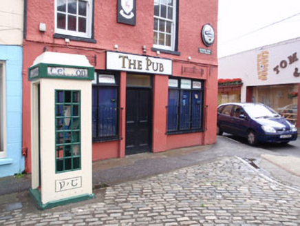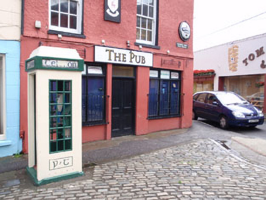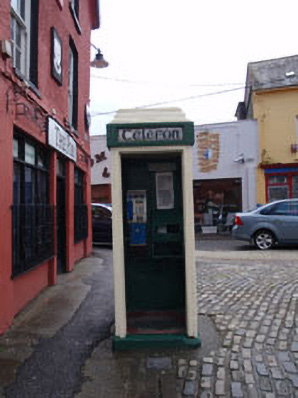 A fine mid-twentieth century telephone box which is an important piece of the street furniture in Clonakilty, as telephone boxes of this type are becoming increasingly rare across Ireland. It displays the post Independence insignia of the Department of Post and Telegraphs, which was brought in when the Free State established its own postal and telecommunications system. It would have originally featured plaques bearing the word 'Telefon' on each of its sides just below the roof, as seen on other examples across the country.